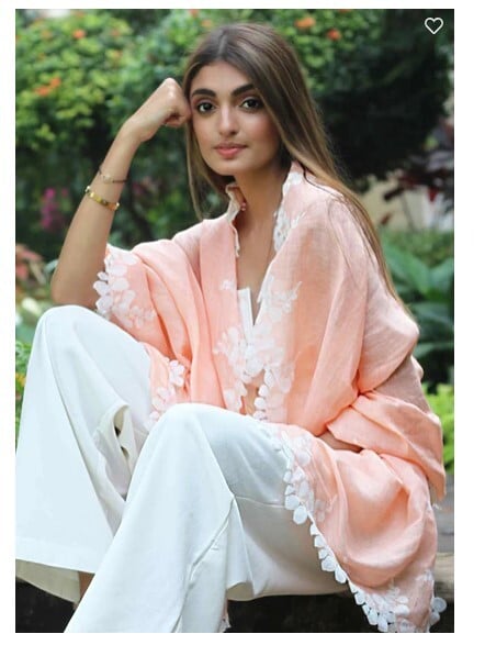 Light Peach Linen and Modal Scarf with an Ivory Scalloped Lace Border – Maneesha Ruia